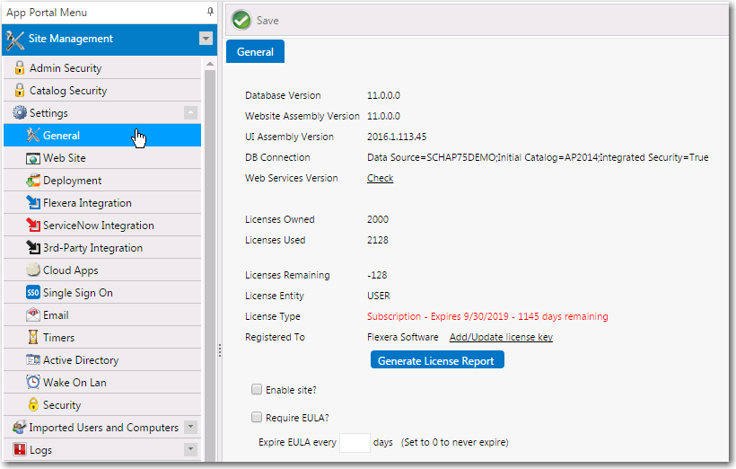 2. Under Site Management , select Settings . The General tab of the Settings View opens.