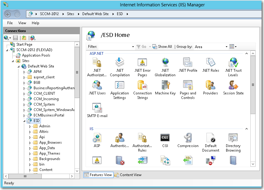 5. Open IIS Manager and select the ESD virtual directory under Sites in the tree.