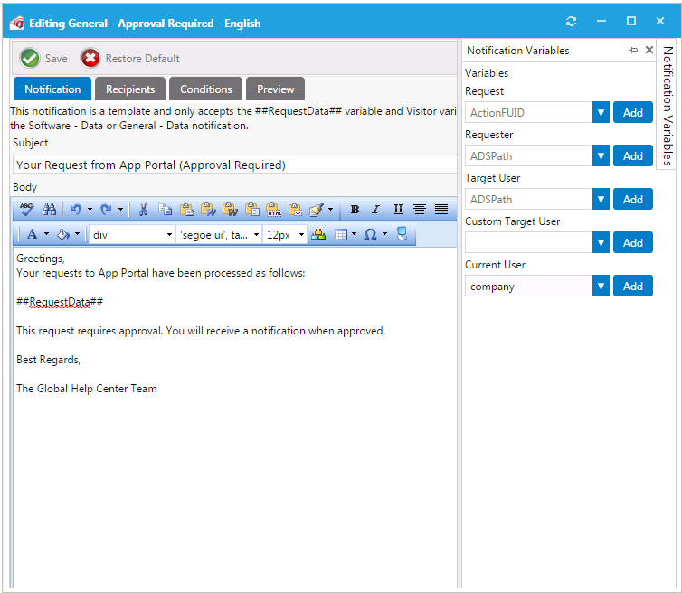 Editing Notification Email Templates and Messages